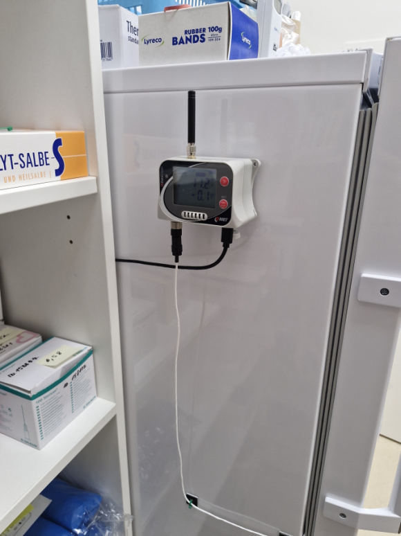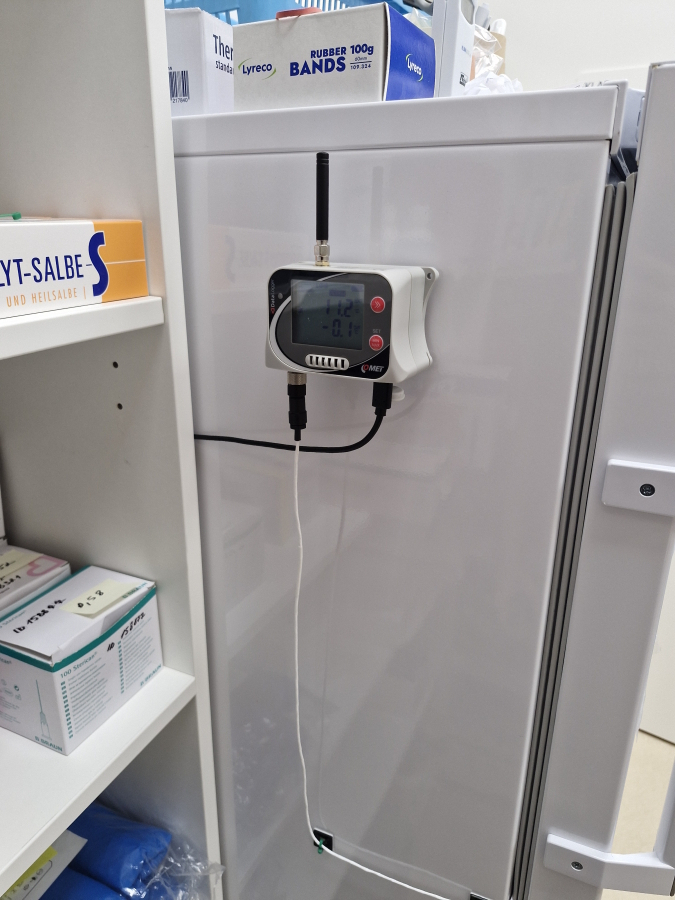 The U3631G data logger was chosen for the pharmacy refrigerator and storage room. It monitors the temperature and relative humidity of the environment and also has an external temperature probe for monitoring refrigerators with a built-in 4G modem. The device ensures highly accurate measurements inside the cooling unit and, thanks to instant alarms, alerts you to any exceedance of the permitted limits. The advantage is that the devices are equipped with a rechargeable battery and, if they are also powered from the mains, the device can respond to a power failure and inform the user with an alarm that it has switched to battery power. Another advantage is that the competent persons are notified even before the set values are exceeded.